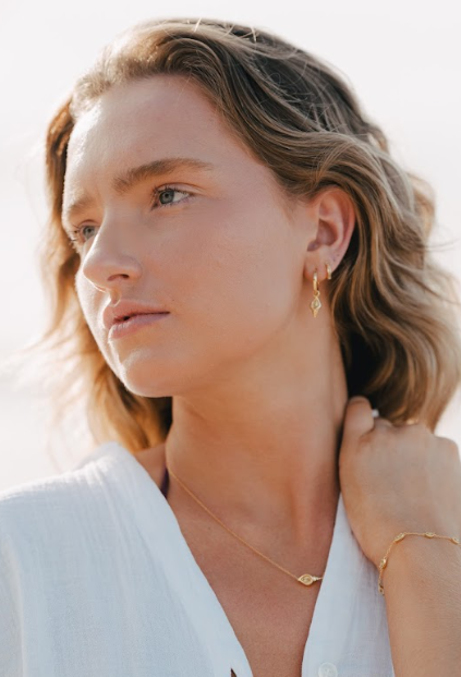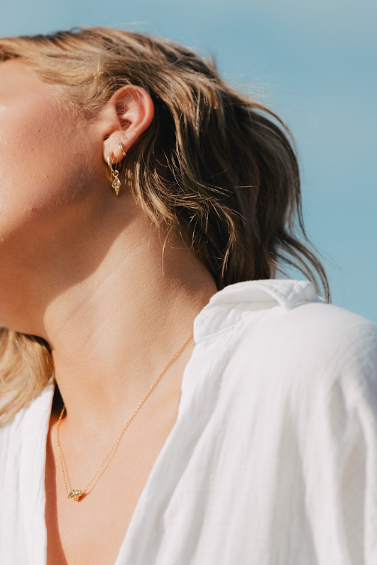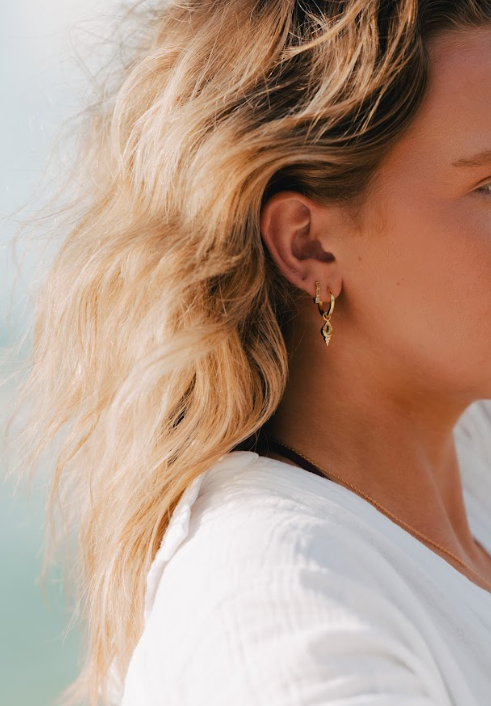 Our LIVV Huggies — made to stun, always. Each hand-drawn design is made for and inspired by Australian women. Featuring subtle green peridot stones on a sleek 16k gold-plated 925 sterling silver base, these huggies are perfect for everyday elegance or stacking with other favourites. Stun, always.